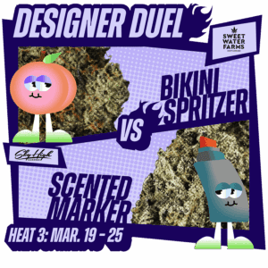 Pick up an eighth of competing strains for 25% off during each match week. You can cast your vote here and we’ll announce the winner after the end of each heat week. The strain with the most votes will qualify and reappear in the final four!